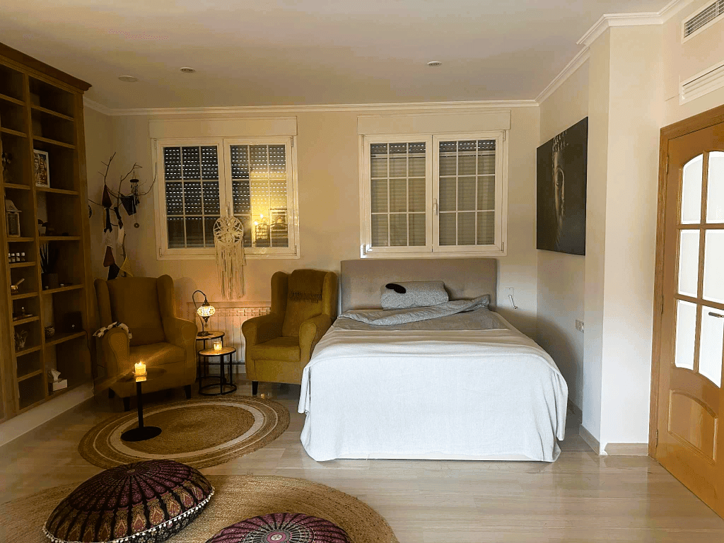 When I begin preparing the physical space, I start by opening the windows — inviting in fresh air, movement, and clarity. The room is cleaned if needed, and fresh, clean linen is placed on the bed. The blindfold is carefully cleaned. Nothing is overlooked.